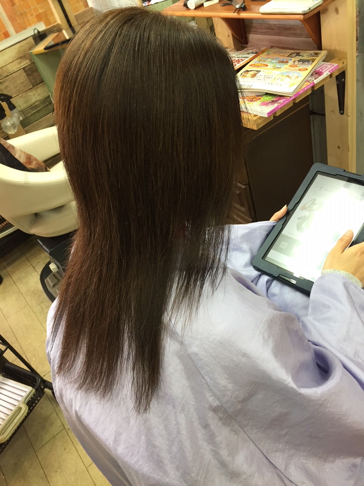 セルフカラーと他店のヘアカラーMIXの縮毛矯正かけっぱなしの常連さんから始まった。