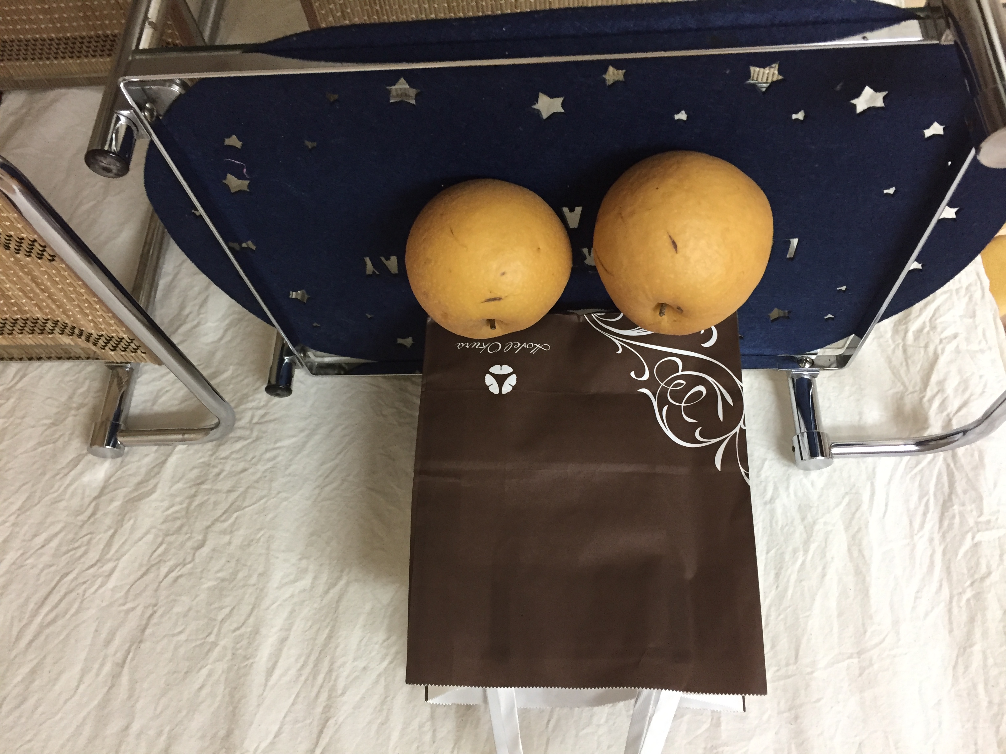 んで、まだ冬ではないのが証明されているのが、今日の画像。弥生ちゃんのご主人からのおみやげ=20世紀梨。鳥取に出張って遠かっただろうなぁ~!お気遣いありがとうございます。